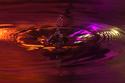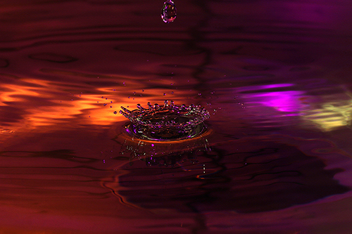 Kamera wenn der Tropfen auf das Wasser prallt. Tja, dann tropf..tropf,